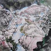 Der Künstler verwendete auf Papier, um dieses Kleine Gemälde zum Thema "Landschaften" anzufertigen.