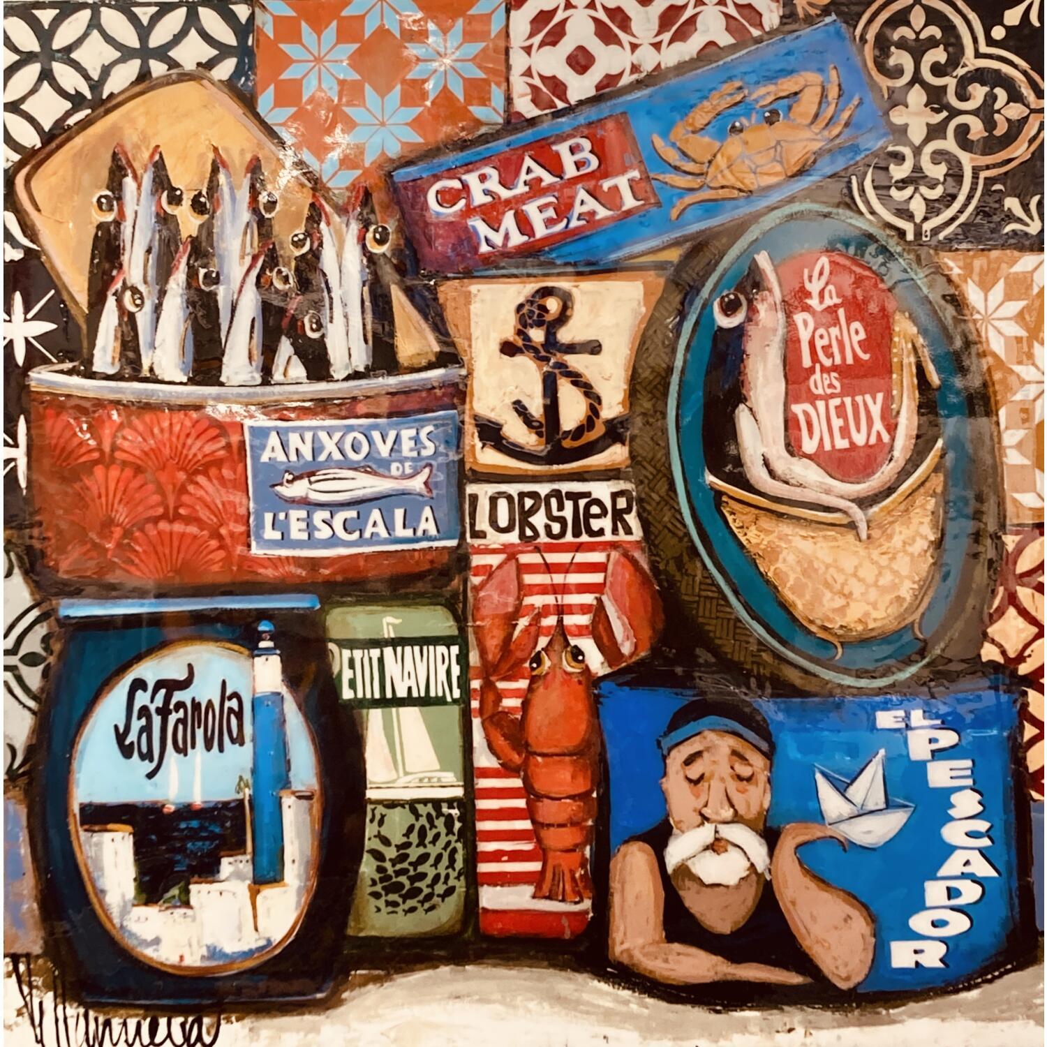 Dieses einzigartige und originale zeitgenössische Kunstwerk "Conservas" in dem Stil "Figurativ" wurde von dem zeitgenössischen Künstler Villanueva Puigdelliura Natalia kreiert.