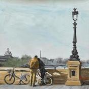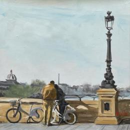 Dieses einzigartige und originale zeitgenössische Kunstwerk "Lovers on the Bridge" in dem Stil "Figurativ" wurde von dem zeitgenössischen Künstler Brooksby kreiert.