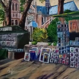 Dieses einzigartige und originale zeitgenössische Kunstwerk "Les bouquinistes près de Notre-dame " in dem Stil "Figurativ" wurde von dem zeitgenössischen Künstler Degabriel Véronique kreiert.