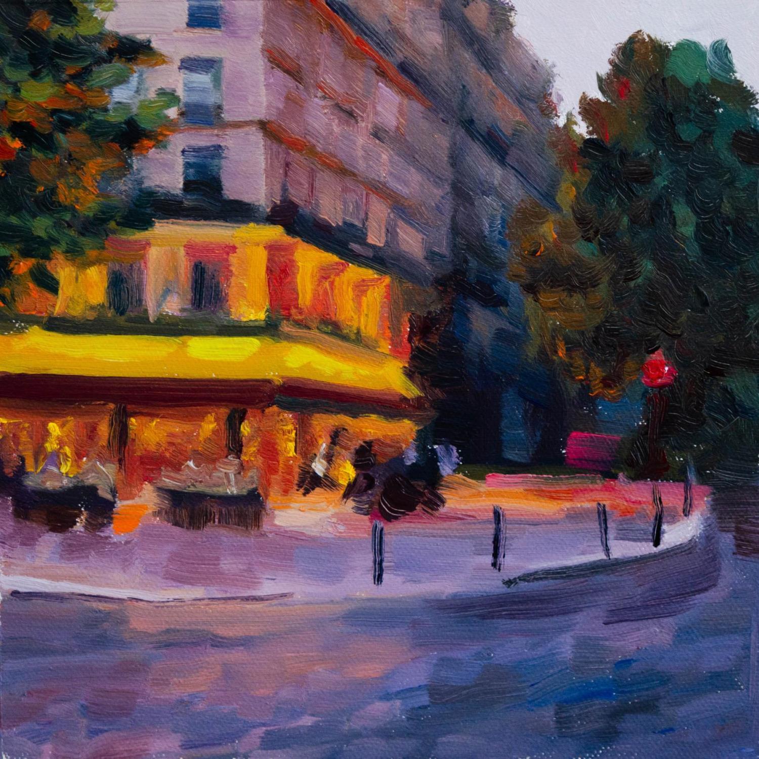 Dieses einzigartige und originelle zeitgenössische Kunstwerk "Café de nuit" wurde von dem zeitgenössischen Künstler Eugène Romain geschaffen.
