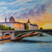 Dieses einzigartige und originale zeitgenössische Kunstwerk "Pont parisien 02" in dem Stil "Figurativ" wurde von dem zeitgenössischen Künstler Eugène Romain kreiert.