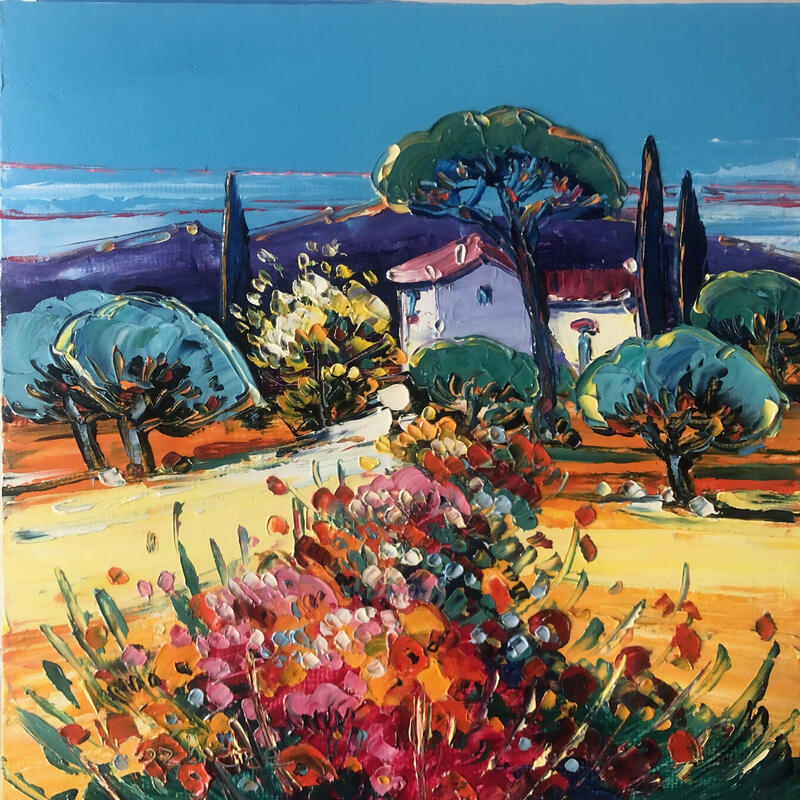 Dieses einzigartige und originale zeitgenössische Kunstwerk "Mas provençal" in dem Stil "Figurativ" wurde von dem zeitgenössischen Künstler Corbière Liisa kreiert.