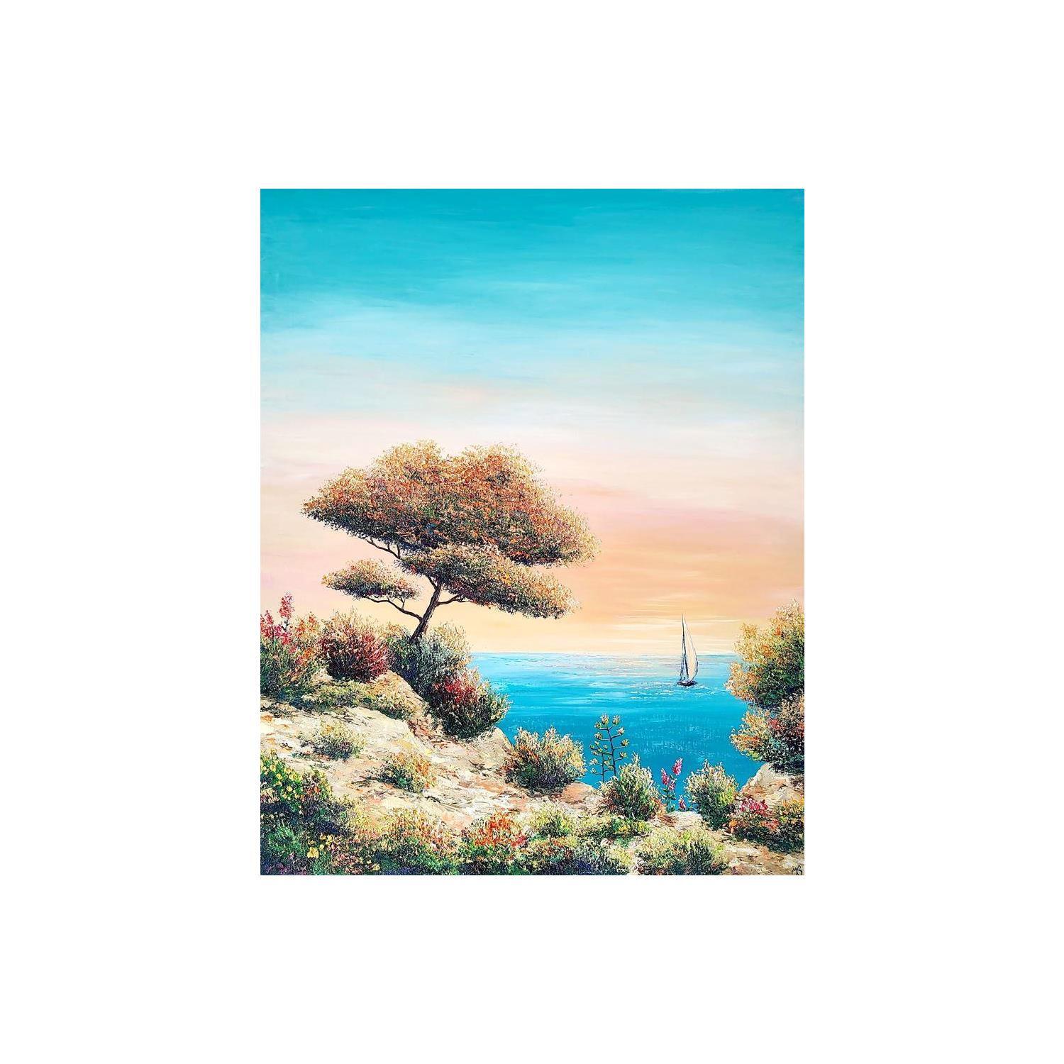 Dieses einzigartige und originale zeitgenössische Kunstwerk "La crique colorée" in dem Stil "Figurativ" wurde von dem zeitgenössischen Künstler Blandin Magali kreiert.