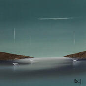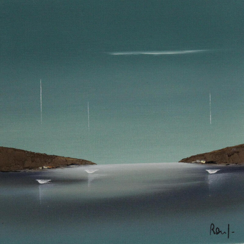 Der Künstler verwendete Öl auf Papier, um dieses Kleine Gemälde zum Thema "Marine, Minimalistisch" anzufertigen.