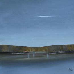 Der Künstler verwendete Öl auf Papier, um dieses Kleine Gemälde zum Thema "Marine, Minimalistisch" anzufertigen.