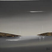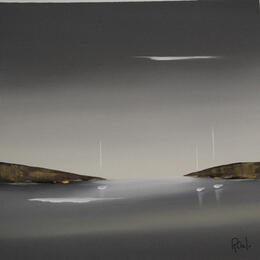 Der Künstler verwendete Öl auf Papier, um dieses Kleine Gemälde zum Thema "Marine, Minimalistisch" anzufertigen.