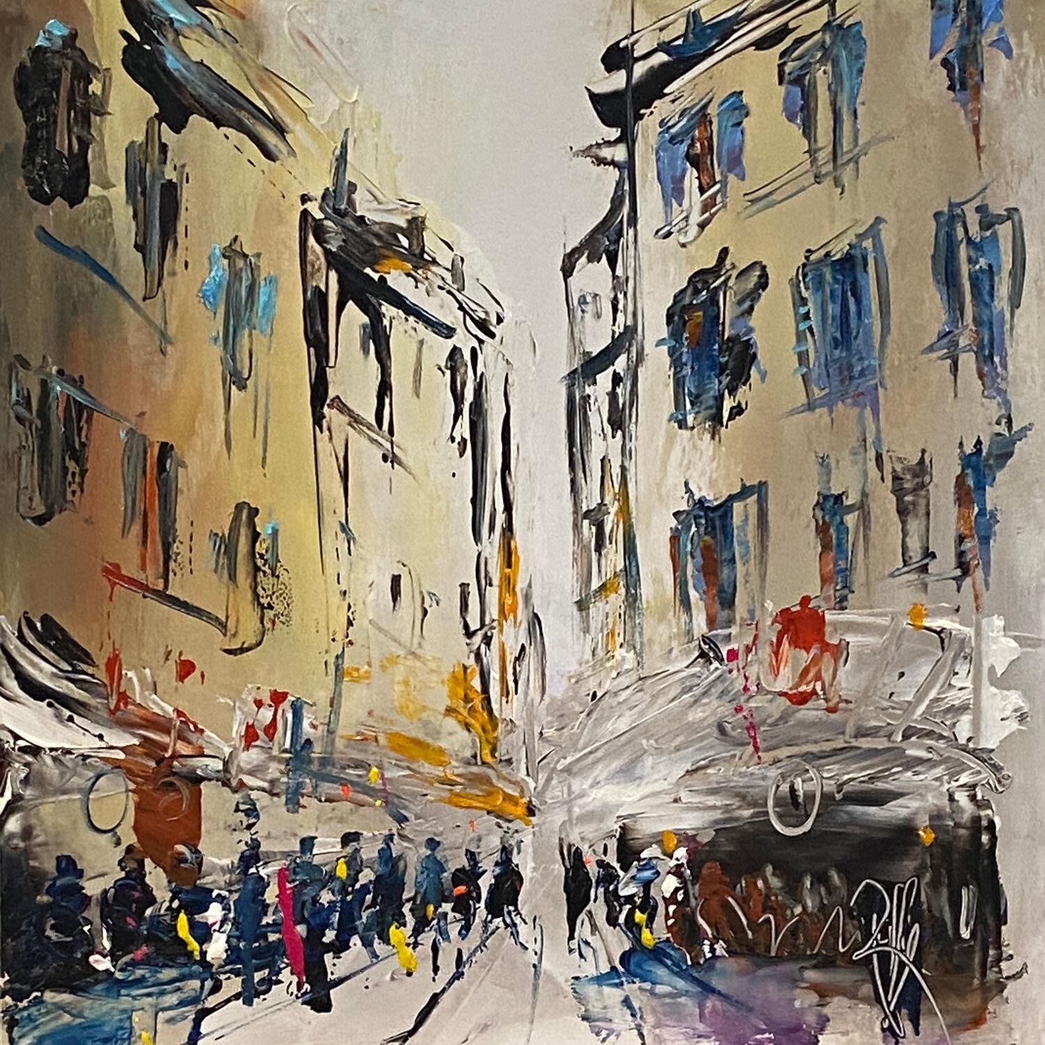 Dieses einzigartige und originale zeitgenössische Kunstwerk "Terrasses animées" in dem Stil "Figurativ" wurde von dem zeitgenössischen Künstler Raffin Christian kreiert.