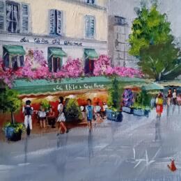Dieses einzigartige und originale zeitgenössische Kunstwerk "Brasserie au chien qui fume " in dem Stil "Figurativ" wurde von dem zeitgenössischen Künstler Degabriel Véronique kreiert.