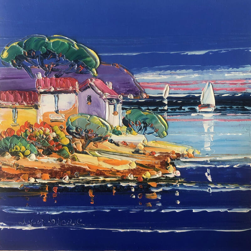 Dieses einzigartige und originale zeitgenössische Kunstwerk "La terrasse au soleil" in dem Stil "Figurativ" wurde von dem zeitgenössischen Künstler Corbière Liisa kreiert.