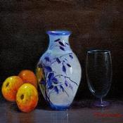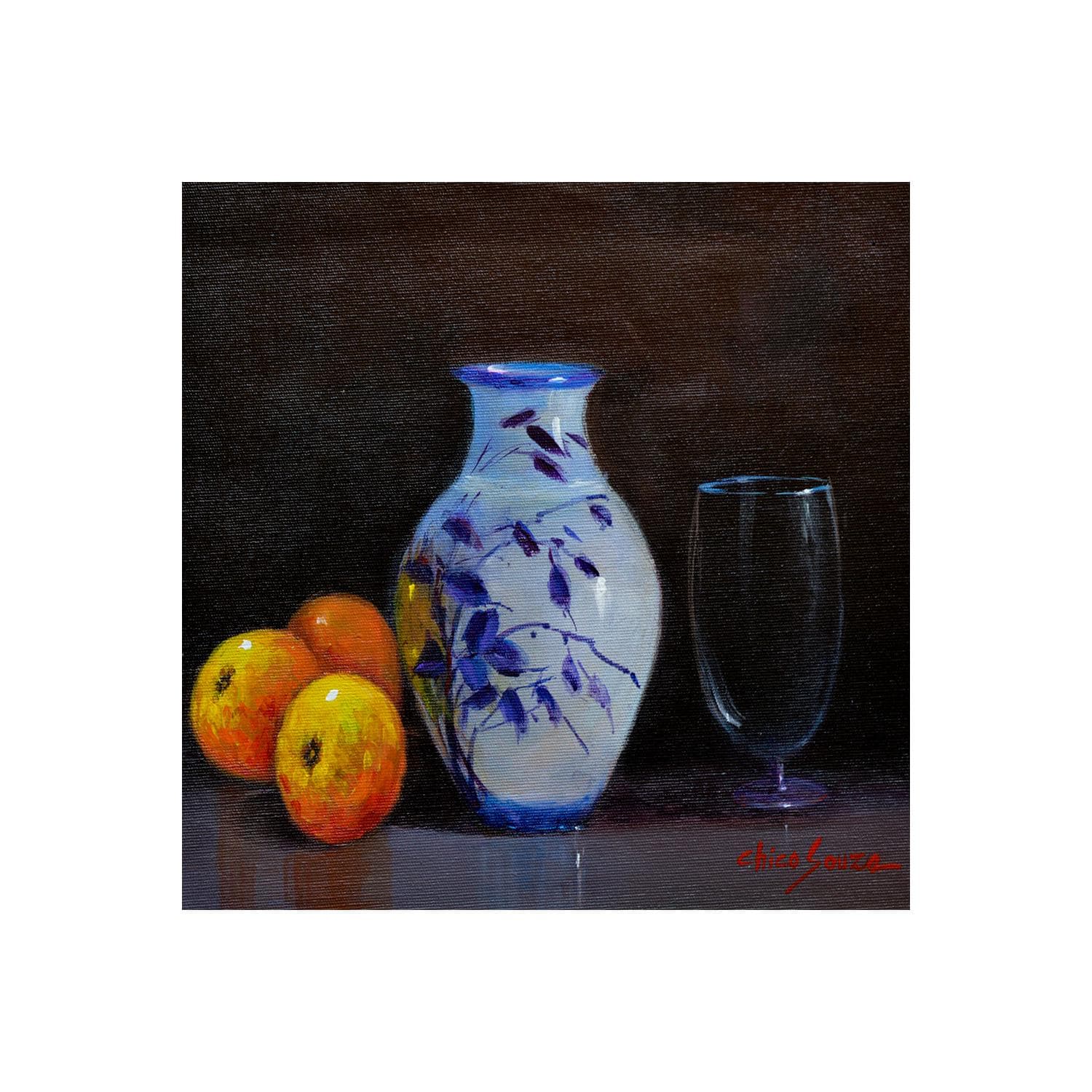 Der Künstler verwendete Öl auf Leinwand, um dieses Kleine Gemälde zum Thema "Stillleben" anzufertigen.