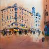 Der Künstler verwendete Öl auf Papier, um dieses Kleine Gemälde zum Thema "Urban" anzufertigen.