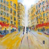Der Künstler verwendete Öl auf Leinwand, um dieses Große Gemälde zum Thema "Urban" anzufertigen.