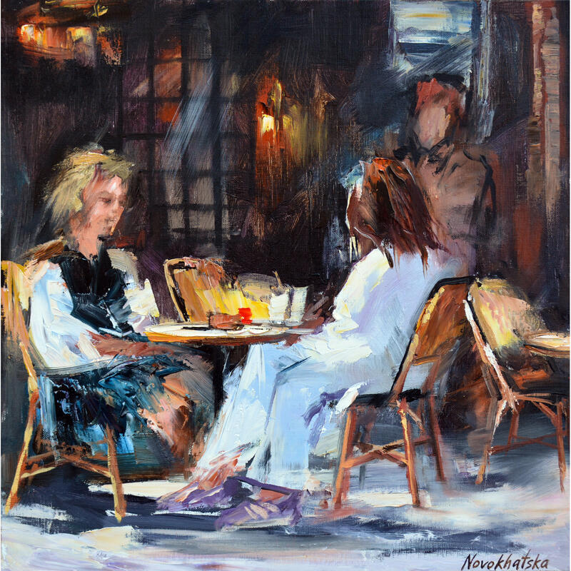 Dieses einzigartige und originale zeitgenössische Kunstwerk "Scène de Café" in dem Stil "Figurativ" wurde von dem zeitgenössischen Künstler Novokhatska Olga kreiert.