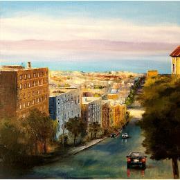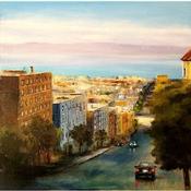 Dieses einzigartige und originale zeitgenössische Kunstwerk "La ville sur la baie" in dem Stil "Figurativ" wurde von dem zeitgenössischen Künstler Rochette Patrice kreiert.