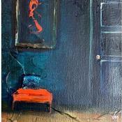 Der Künstler verwendete die Öltechnik, um dieses kleinformatige Gemälde auf Leinwand im figurativen Stil zu schaffen.