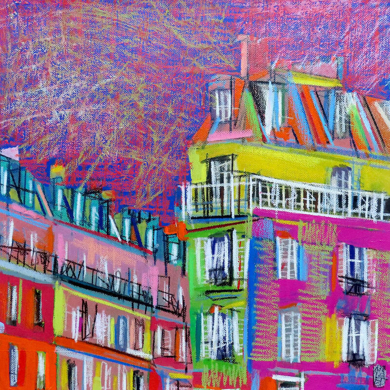 Au rythme des déménagements part 3Gemälde Au rythme des déménagements part 3 von Anicet Olivier | Gemälde Figurativ Urban Architektur Acryl Pastell
