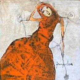 Dieses einzigartige und originelle zeitgenössische Kunstwerk "La robe orange 301-1245-20220613-13" wurde von der zeitgenössischen Künstlerin Guillon Anne geschaffen.