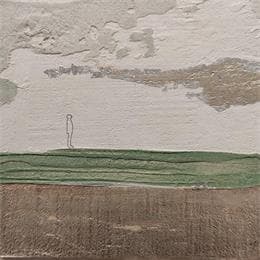 Der Künstler verwendete Sand auf Papier, um dieses Kleine Gemälde zum Thema "Alltagsszenen" anzufertigen.