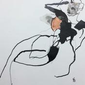 Der Künstler verwendete Tinte auf Papier, um dieses Kleine Gemälde zum Thema "Akt" anzufertigen.