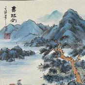 Der Künstler verwendete Tinte auf Papier, um dieses Kleine Gemälde zum Thema "Landschaften" anzufertigen.