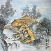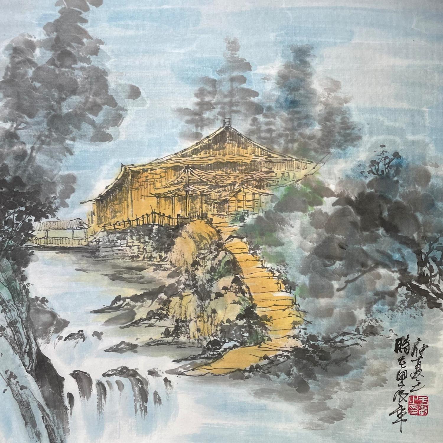 Der Künstler verwendete Tinte auf Papier, um dieses Kleine Gemälde zum Thema "Natur, Landschaften" anzufertigen.
