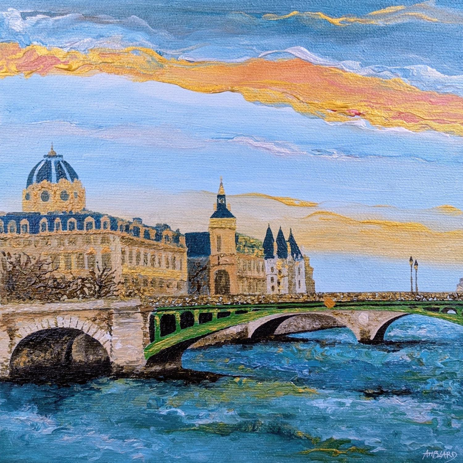 Dieses einzigartige und originale zeitgenössische Kunstwerk "Ile de la Cité" in dem Stil "Impressionismus" wurde von dem zeitgenössischen Künstler Amblard Florence kreiert.