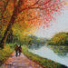 Dieses einzigartige und originelle zeitgenössische Kunstwerk „Herbssee“ wurde vom zeitgenössischen Künstler Dessapt Elika geschaffen. Der Künstler verwendete Acrylfarben und Sand, um dieses kleinformatige Gemälde im impressionistischen Stil auf Leinwand zu schaffen.