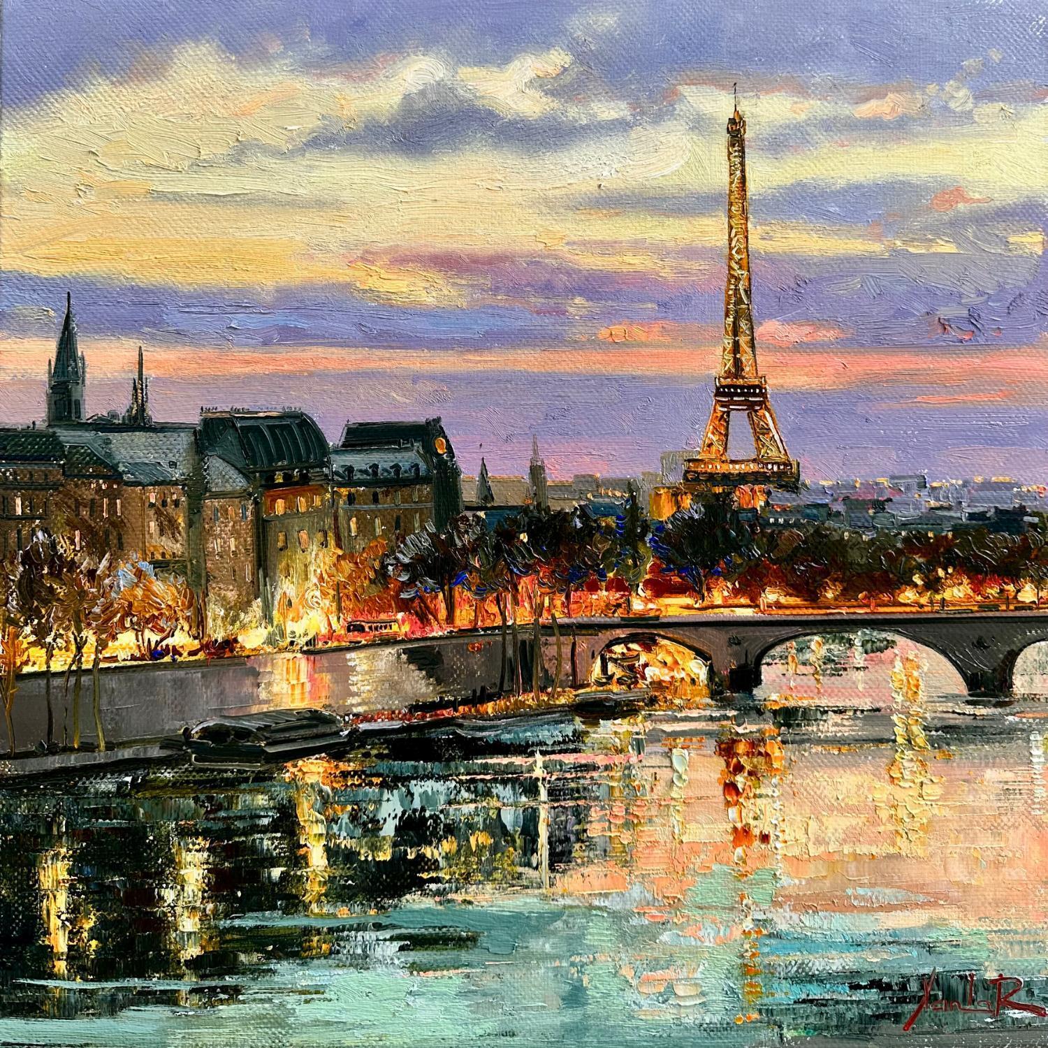 Dieses einzigartige und originelle zeitgenössische Kunstwerk "50x50 "Sunset in Paris" 107-21551-20251204-1" wurde von dem zeitgenössischen Künstler Xanlar geschaffen.