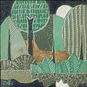 Der Künstler verwendete Acryl, Pappe auf Pappe, um dieses Kleine Gemälde zum Thema "Landschaften" anzufertigen.
