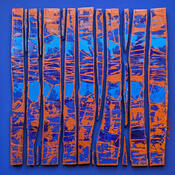Der Künstler verwendete Acryl, Holz, Harz auf Holz, um dieses Kleine Gemälde anzufertigen.