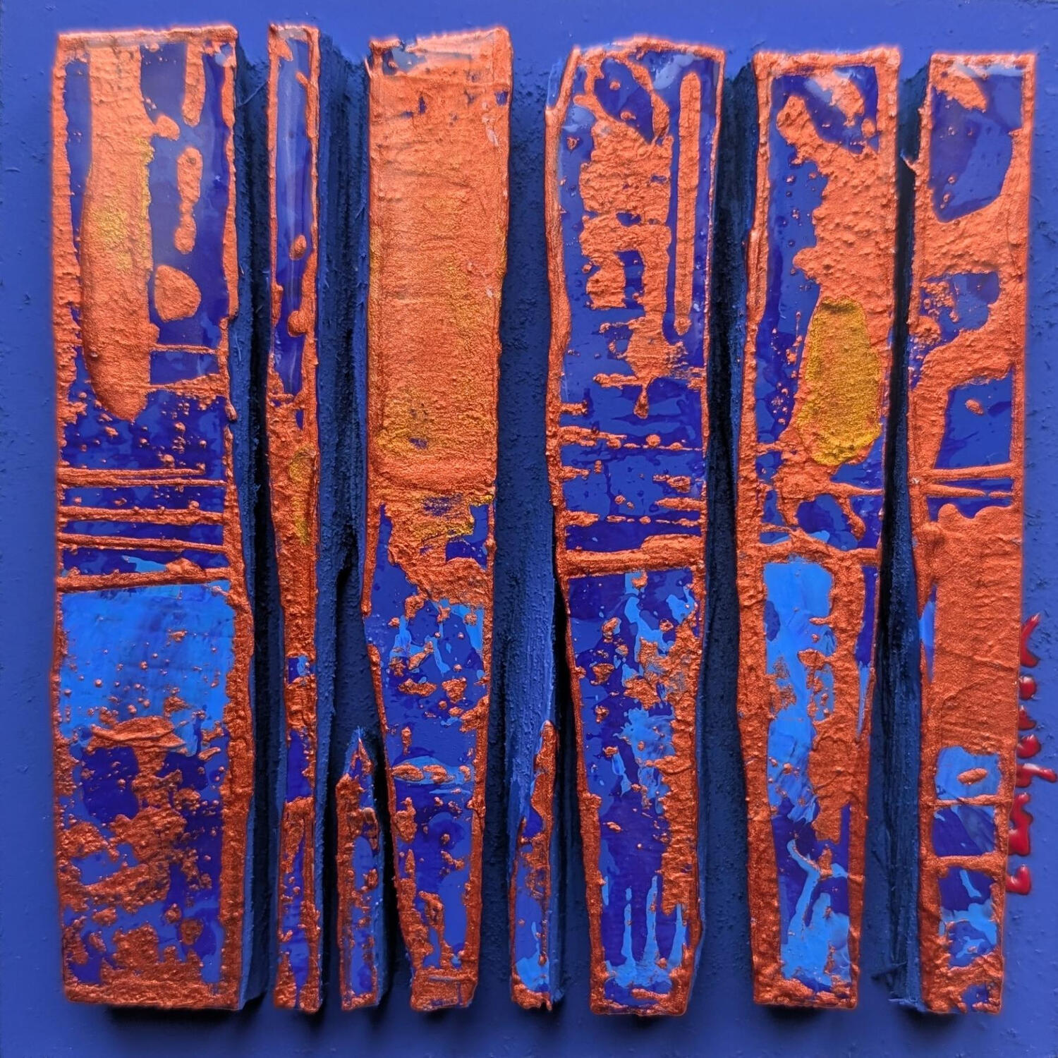 Der Künstler verwendete Acryl, Holz, Harz auf Holz, um dieses Kleine Gemälde anzufertigen.