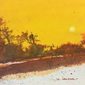 Der Künstler verwendete Aquarell auf Papier, um dieses Kleine Gemälde zum Thema "Landschaften" anzufertigen.