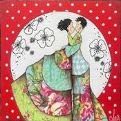 Gemälde Rose et Léon von Blais Delphine | Gemälde Naive Kunst Alltagsszenen Acryl Collage