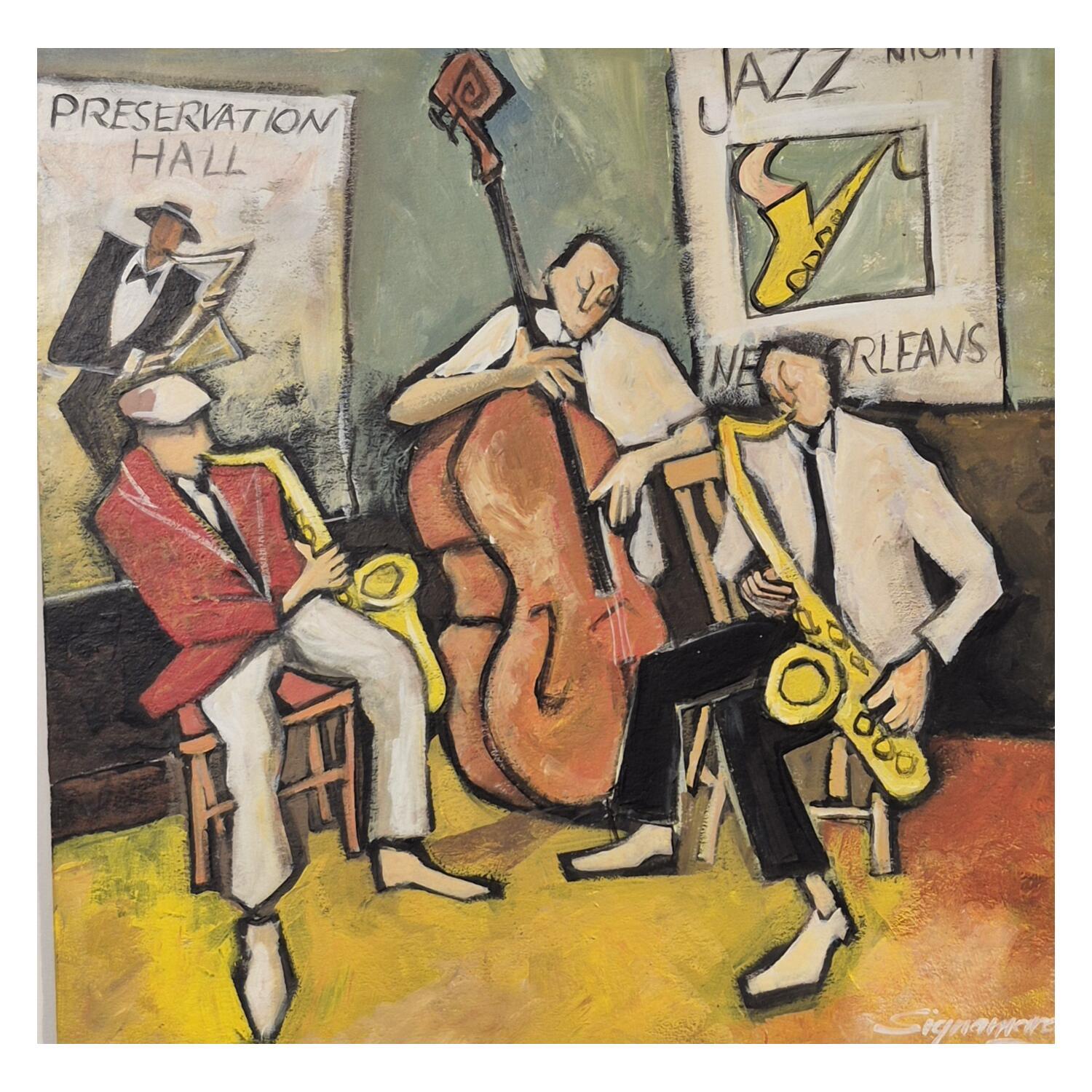 Dieses einzigartige und originale zeitgenössische Kunstwerk "Jazz night" in dem Stil "Naive Kunst" wurde von dem zeitgenössischen Künstler Signamarcheix Bernard kreiert.