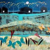 Der Künstler verwendete Acryl auf Papier, um dieses Kleine Gemälde zum Thema "Landschaften" anzufertigen.