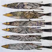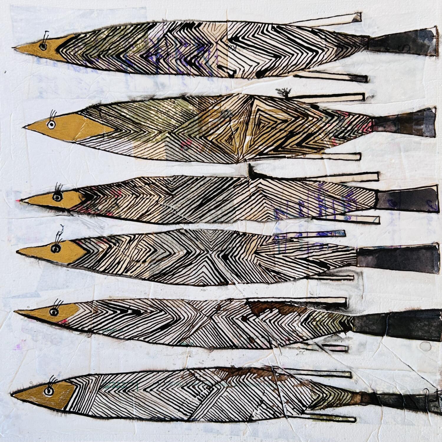Dieses einzigartige und originale zeitgenössische Kunstwerk "Sardines à paillettes" in dem Stil "Naive Kunst" wurde von dem zeitgenössischen Künstler Colombo Cécile kreiert.