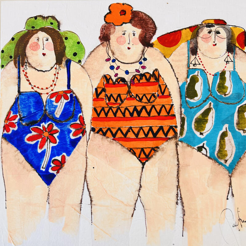 Dieses einzigartige und originale zeitgenössische Kunstwerk "Martine, Suzanne, virginie" in dem Stil "Naive Kunst" wurde von dem zeitgenössischen Künstler Colombo Cécile kreiert.