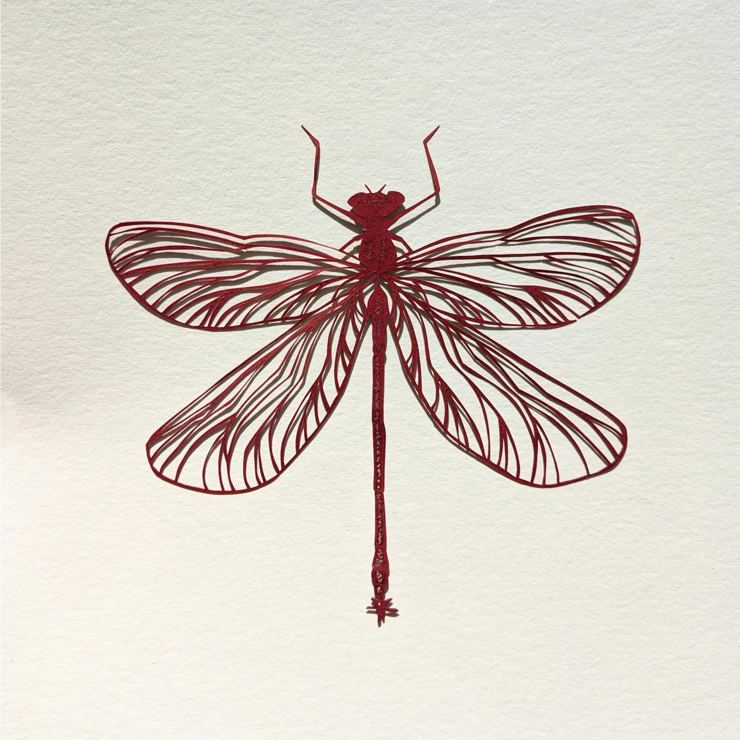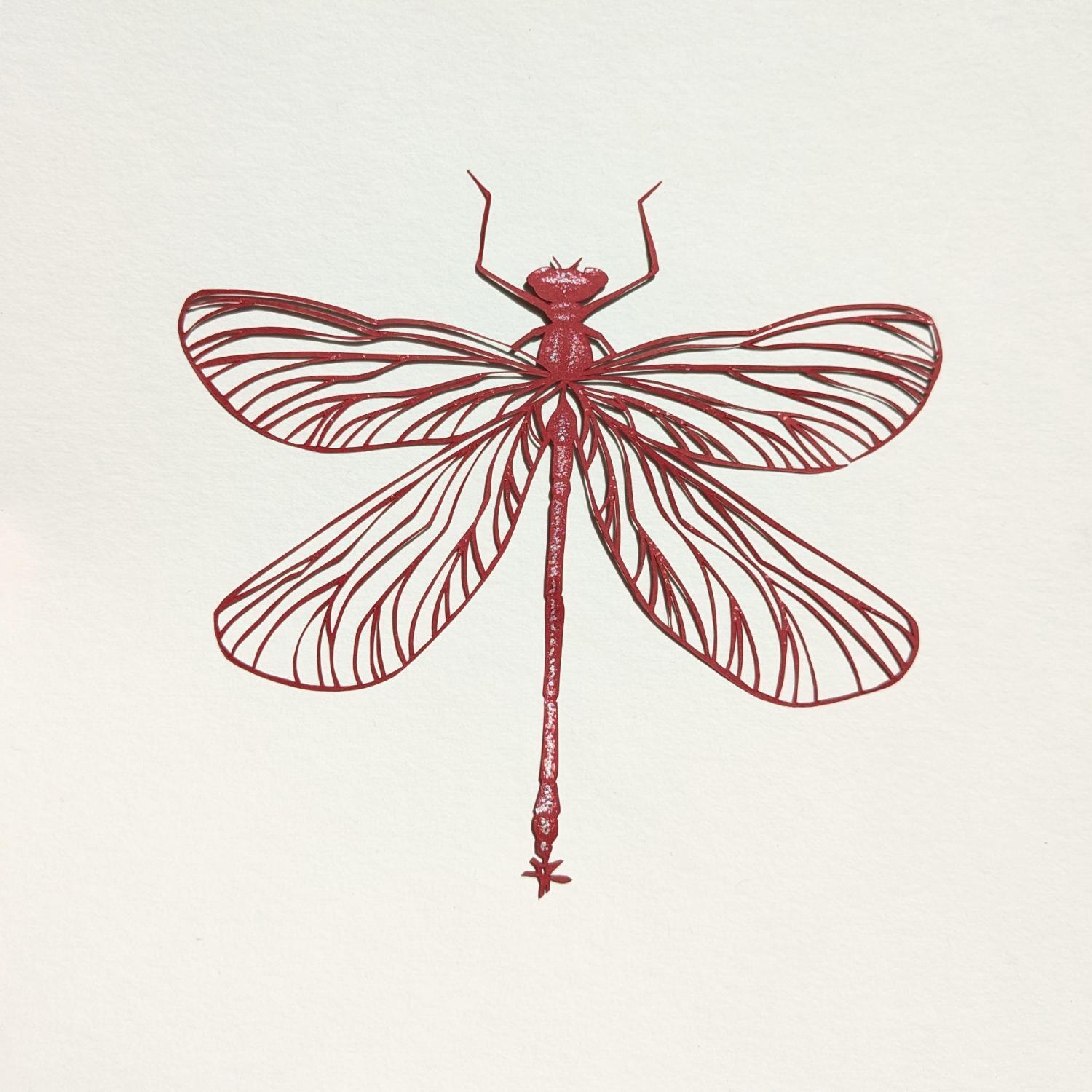 Gemälde Libellule #1 von Atalanta Vanessa | Gemälde Natur Tiere Pappe Papier