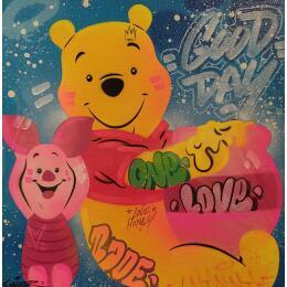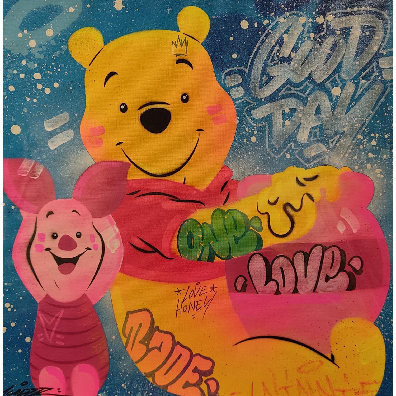 Dieses einzigartige und originale zeitgenössische Kunstwerk "Winnie Porcinet" in dem Stil "Pop-Art" wurde von dem zeitgenössischen Künstler Lemoine Mael kreiert.