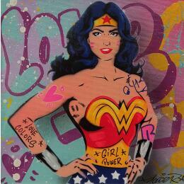 Dieses einzigartige und originale zeitgenössische Kunstwerk "Wonder Woman" in dem Stil "Pop-Art" wurde von dem zeitgenössischen Künstler Lemoine Mael kreiert.