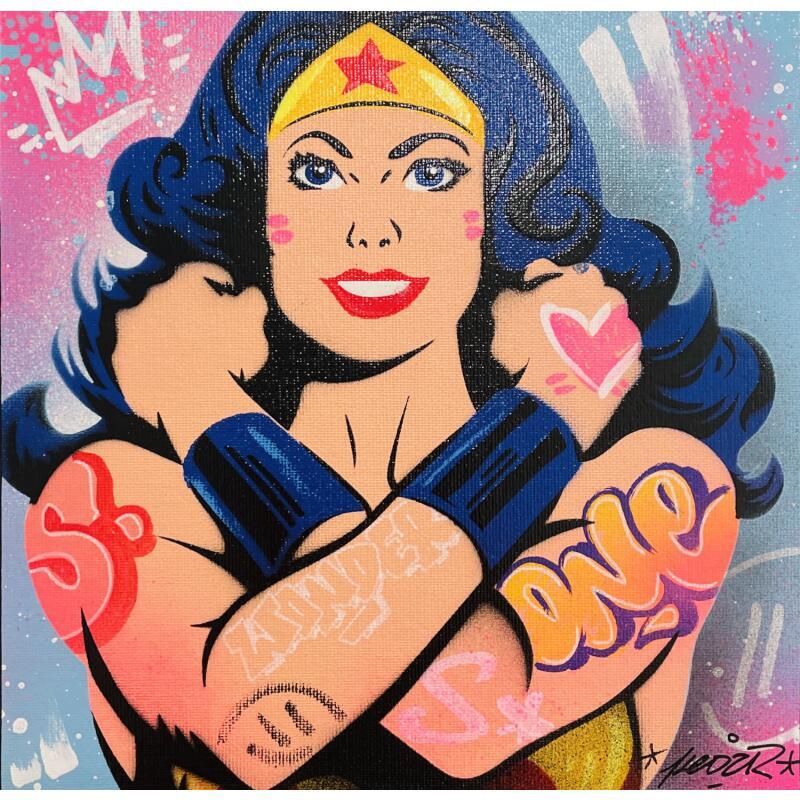 Dieses einzigartige und originale zeitgenössische Kunstwerk "Wonder Woman" in dem Stil "Pop-Art" wurde von dem zeitgenössischen Künstler Lemoine Mael kreiert.