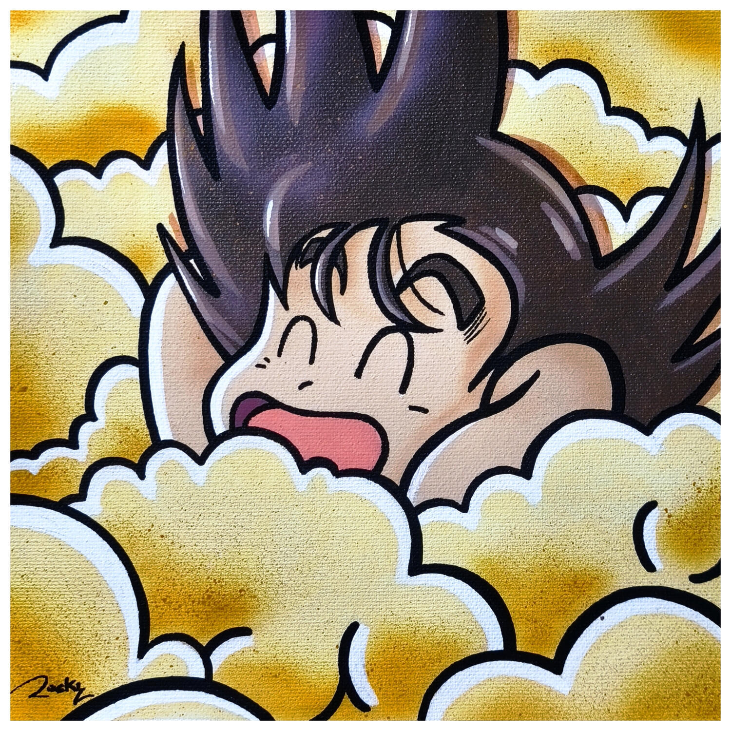 Dieses einzigartige und originelle zeitgenössische Kunstwerk „Nuage magique“ (Magische Wolke) wurde vom zeitgenössischen Künstler Rocky Chaplin geschaffen. Der Künstler verwendete verschiedene Techniken, um dieses kleinformatige Gemälde mit seinem einzigartigen Stil zu schaffen.