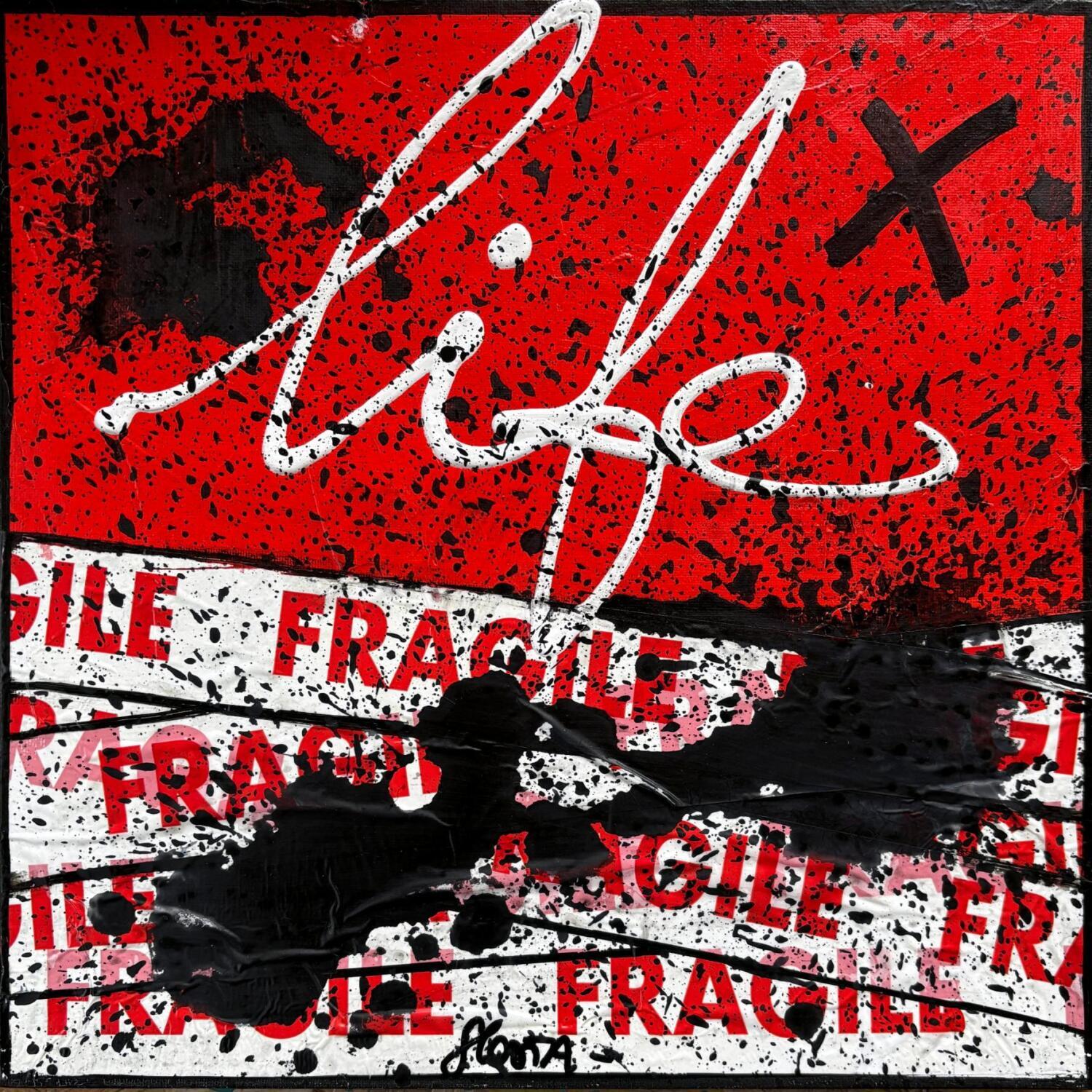 Dieses einzigartige und originale zeitgenössische Kunstwerk "Fragile life (rouge)" in dem Stil "Pop-Art" wurde von dem zeitgenössischen Künstler Costa Sophie kreiert.