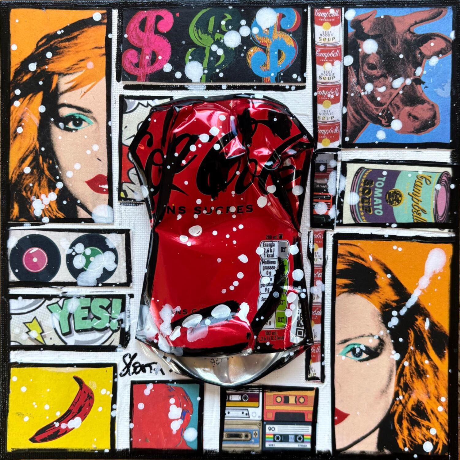 Dieses einzigartige und originale zeitgenössische Kunstwerk "POP COKE (blondie)" in dem Stil "Pop-Art" wurde von dem zeitgenössischen Künstler Costa Sophie kreiert.
