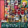 Der Künstler verwendete Acryl, Collage, Upcycling auf Leinwand, um dieses Große Gemälde zum Thema "Pop-Ikonen" anzufertigen.