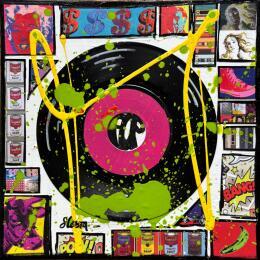 Dieses einzigartige und originale zeitgenössische Kunstwerk "Pop vinyle (rose)" in dem Stil "Pop-Art" wurde von dem zeitgenössischen Künstler Costa Sophie kreiert.