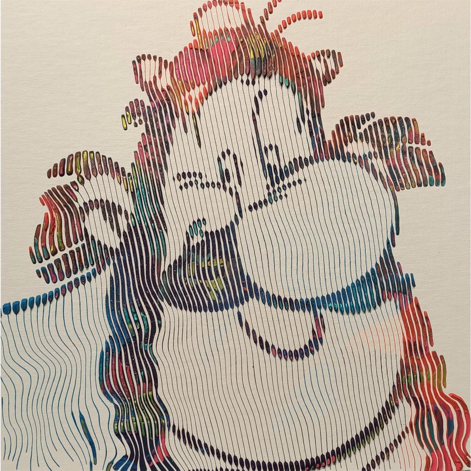 Der Künstler verwendete Acryl auf Leinwand, um dieses Kleine Gemälde zum Thema "Pop-Ikonen" anzufertigen.