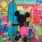 Dieses einzigartige und originale zeitgenössische Kunstwerk "Mickey surf" in dem Stil "Pop-Art" wurde von dem zeitgenössischen Künstler Kikayou kreiert.