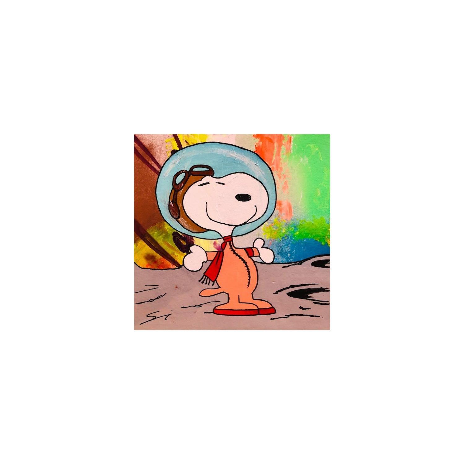 Dieses einzigartige und originale zeitgenössische Kunstwerk "fist dog in the moon" in dem Stil "Pop-Art" wurde von dem zeitgenössischen Künstler Mestres Sergi kreiert.
